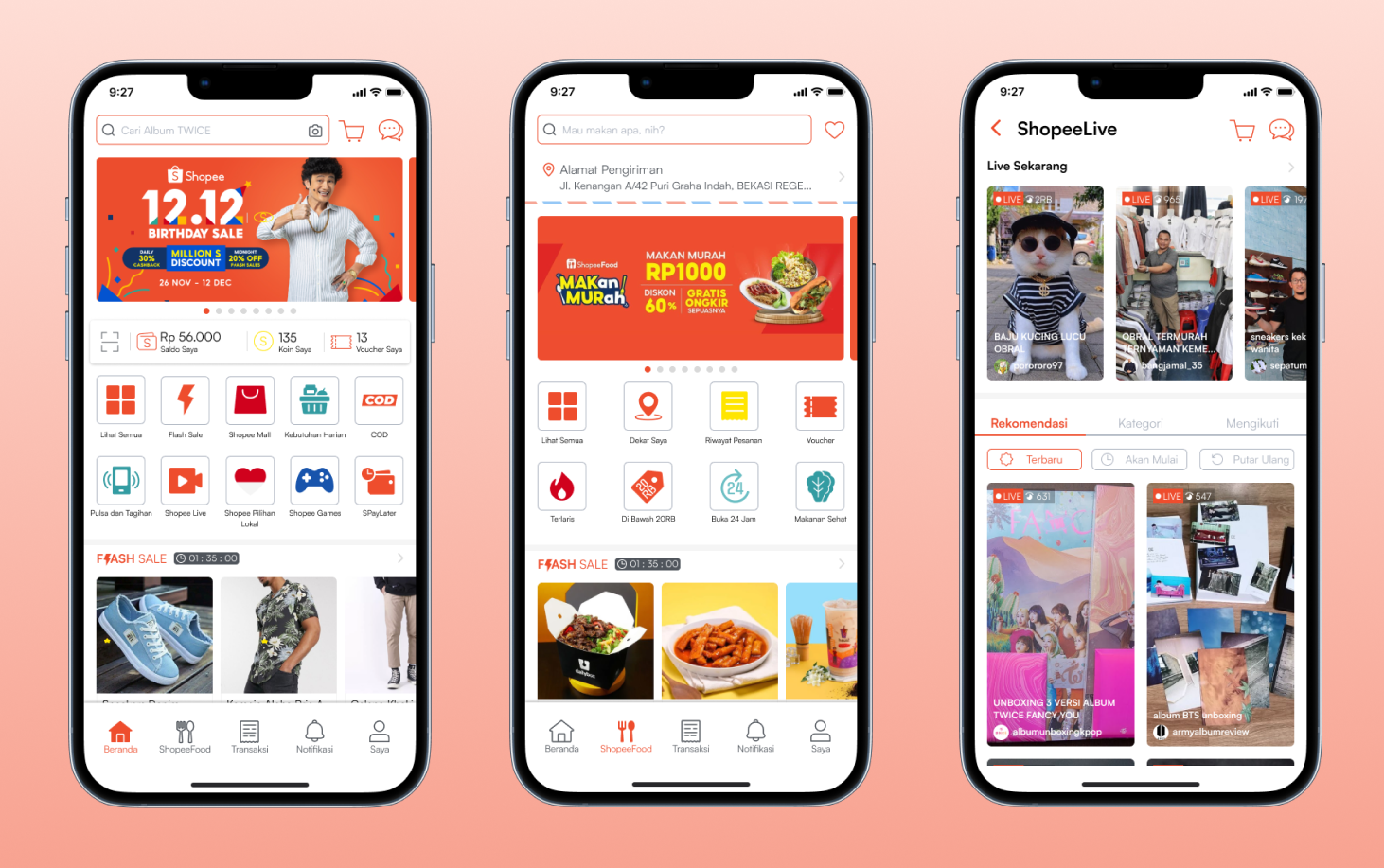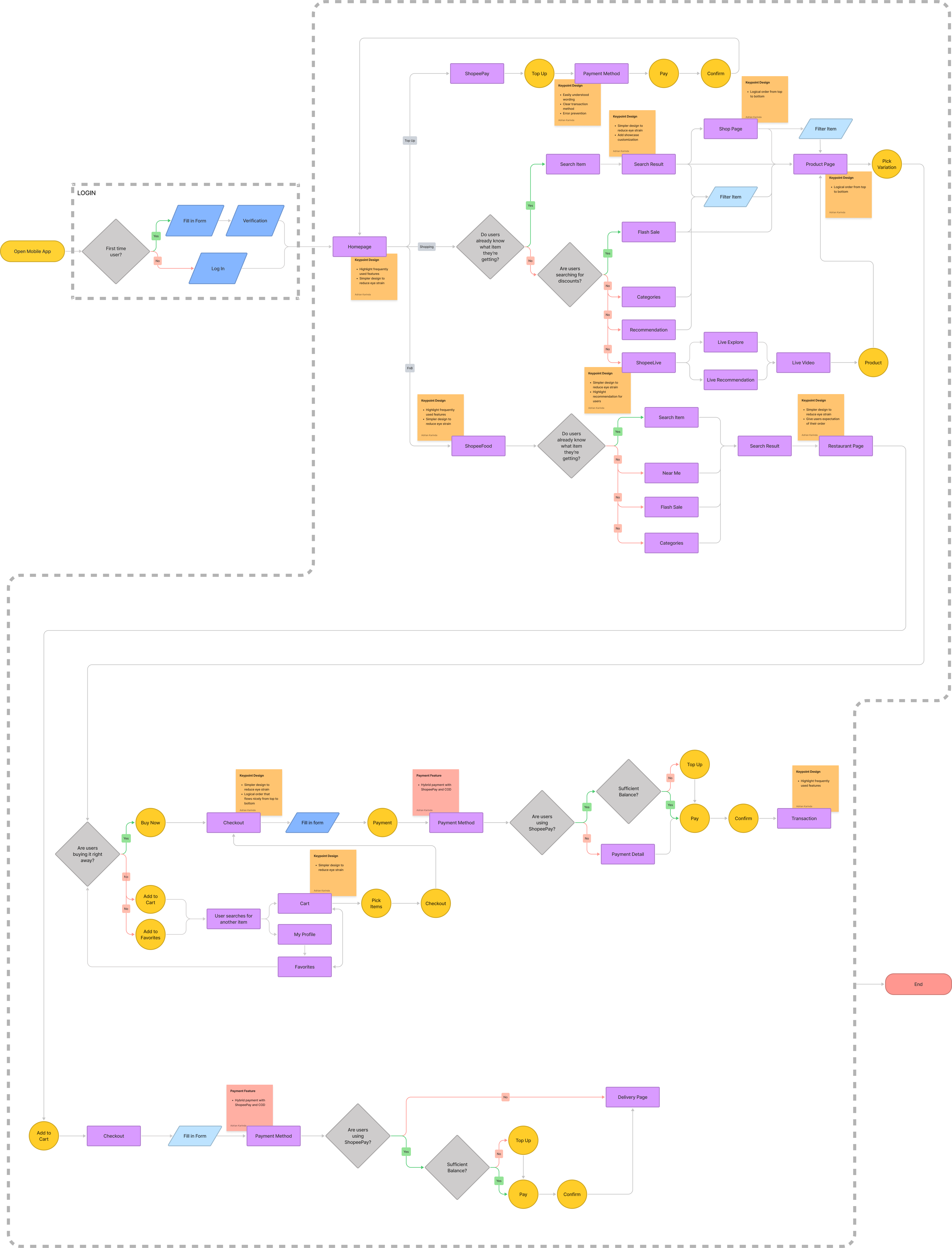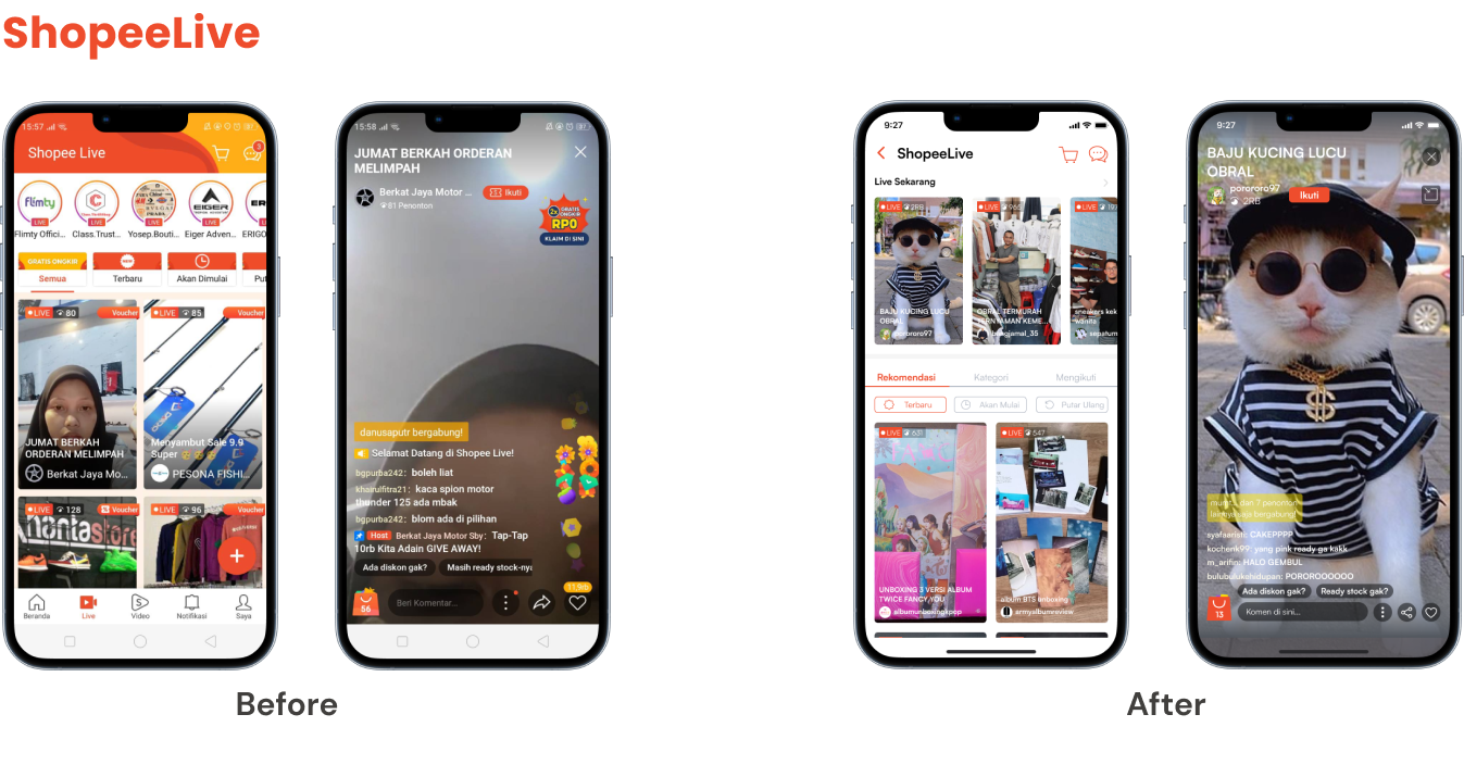 This userflow shows how users would shop for items, food, and/or watch videos of shops promoting their products live on app. The 3 most used features according to user interviews are as such Shopee shopping, ShopeeFood and ShopeeLive.