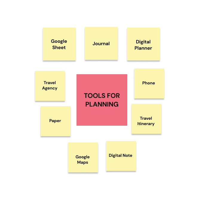 Conducting interview and tests for 5 users who have used a digital planner for their trip to know more what they think of their experience using those apps. They were given questions as such:
