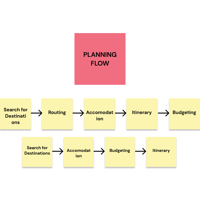 This user flow shows the initial idea of how users would plan using the web. The order of the flow will be from the most important information needed to get to the least important one.