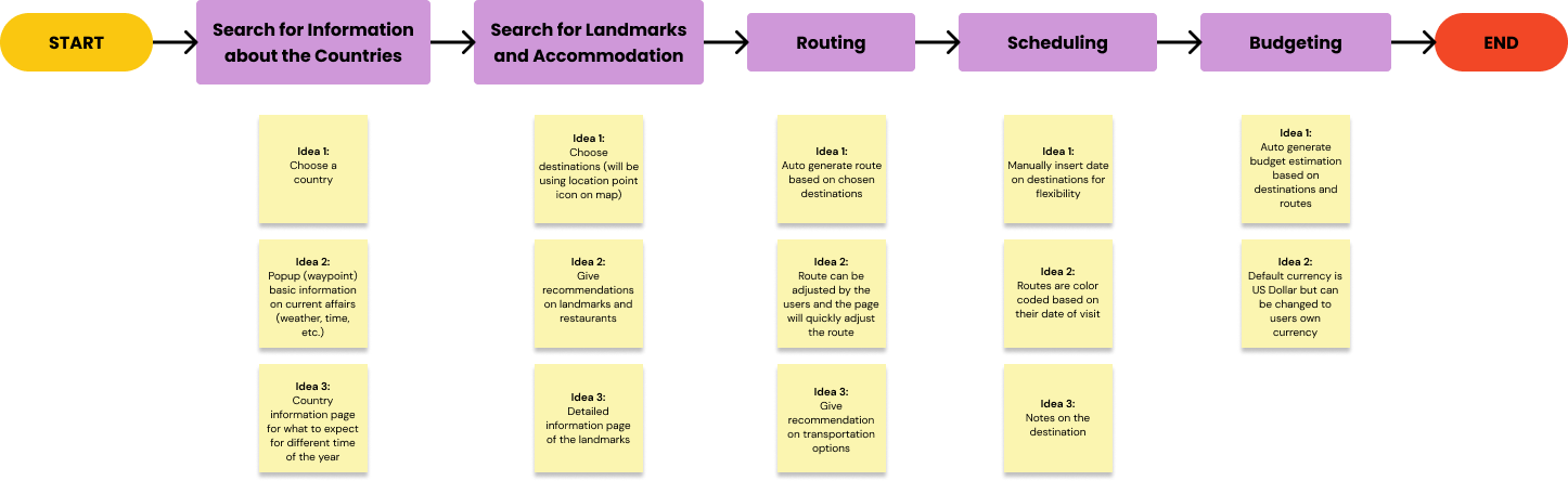 With this journey map we could imagine what would our persona do for each step of planning their trip. She will need to do tasks in 5 sections.